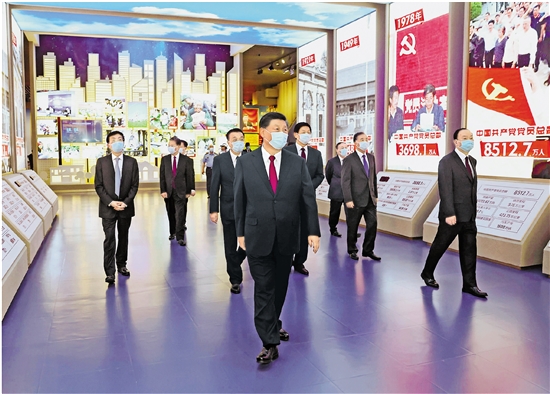 6月18日,党和国家领导人习近平、李克强、栗战书、汪洋、王沪宁、赵乐际、韩正、王岐山等在中国共产党历史展览馆参观“‘不忘初心、牢记使命’中国共产党历史展览”。 新华社记者 鞠鹏 摄