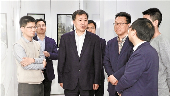 张振丰(中)考察中国科技大学上海研究院。 拍友 陈书恒 摄