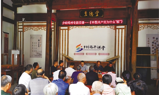 近日,柯城区七里乡少岭坞村组团联村团长在乡村振兴讲堂给全体党员干部上了一堂生动的党课。党员们纷纷表示,将以党史学习教育为契机,坚定理想信念,提升党性修养,为乡村振兴贡献智慧和力量。