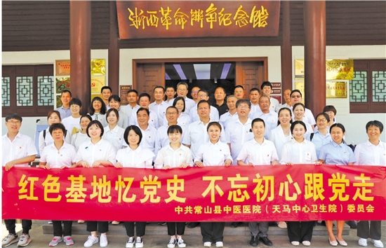 | 日前,常山县中医医院组织开展“红色基地忆党史,不忘初心跟党走”主题实践活动,全体党员走进浙西革命斗争纪念馆开展“实景教学”,重温入党誓词,并举行“党史学习教育心得交流会”。 张志涛 摄 |