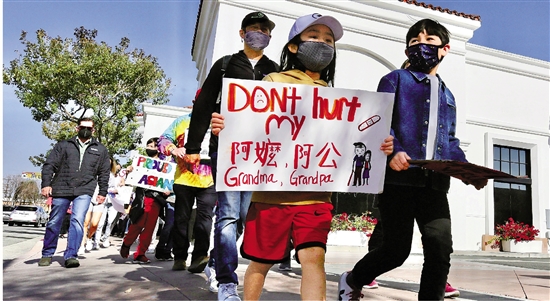 美国洛杉矶县圣加布里埃尔谷地亚裔聚居城市的数百民众在“为反亚裔仇恨犯罪及歧视集会与游行”活动中走上街头游行。(资料照片) 新华社发