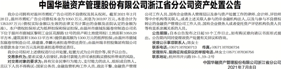 中国华融资产管理股份有限公司浙江省分公司资产处置公告