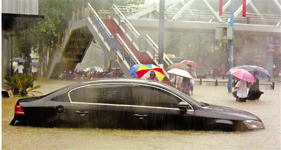 7月20日,车辆在郑州市街头被淹。 新华社记者 朱祥 摄
