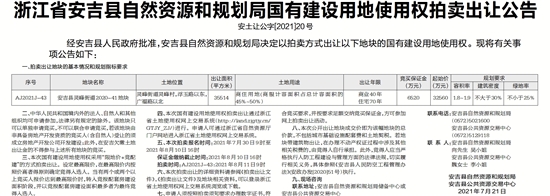 浙江省安吉县自然资源和规划局国有建设用地使用权拍卖出让公告