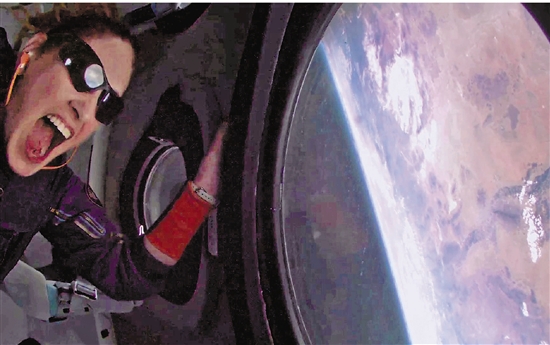 ▲ 7月11日,维珍银河公司首席宇航员教练贝丝·摩西在“团结”号太空船内体验试飞(视频截图)。 新华社发