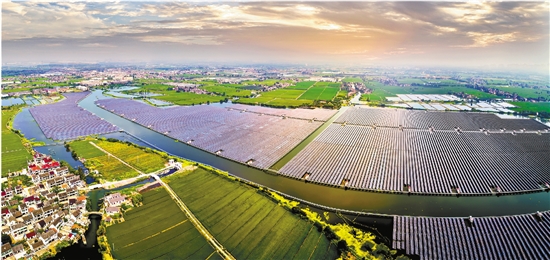 嘉兴市最大的“渔光互补”水上光伏电站——嘉善县陶庄镇夏墓荡70兆瓦渔光互补光伏电站。 周前 摄