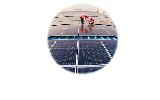 国网嘉兴供电公司工作人员正在开展屋顶光伏服务。 陈大农 摄