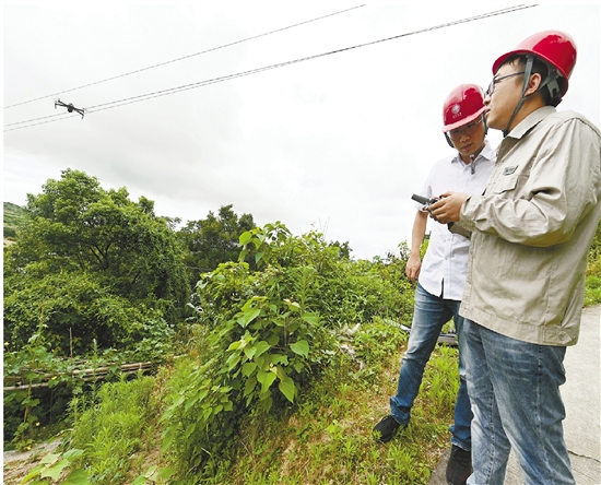国网玉环市供电公司纪检人员与运检人员合力开展线路巡视,监督工作落实情况。 陈维益 摄