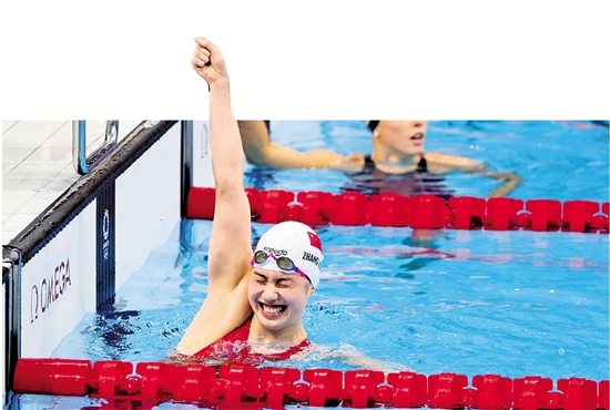 在东京奥运会女子200米蝶泳决赛中,中国选手张雨霏夺得冠军。 本报特派记者 王建龙 摄