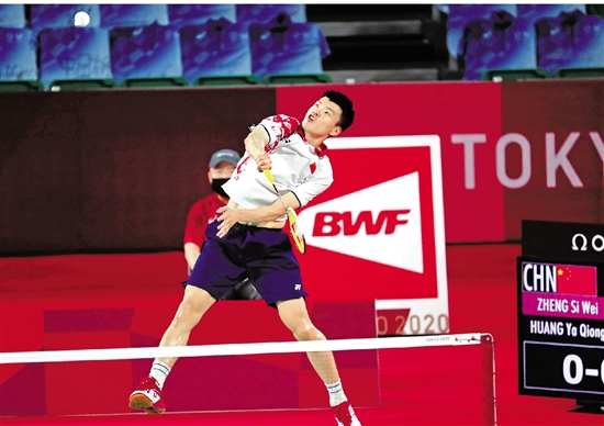 王懿律在东京奥运会羽毛球混合双打决赛中。 本报特派记者 王建龙 摄