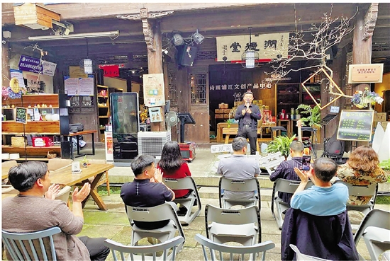 今年5月,第三期“乡村运营官特训班”实践部分在新光村廿玖间里举行。图为学员上台分享。 受访者供图
