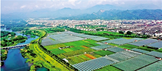 仙居县横溪镇果蔬基地与周边村庄构成一幅美丽的乡村画卷。 拍友 王华斌 摄