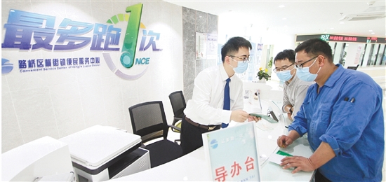 横街镇便民服务中心工作人员正在为企业员工提供子女入学相关证明受理咨询 王国洋 摄
