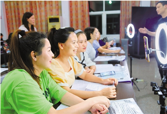 7月31日晚,玉环市龙溪镇在夜校举办“美好生活·巾帼云创”村播公益培训班,30多名农家姐妹在职业技能老师的指导下,免费学习短视频拍摄、直播带货技巧等电商、云创业课程,掌握线上线下创业技能。