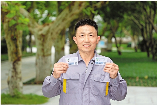 李正斌拿着自己考取的两张特种作业证。 本报记者 陆乐 摄