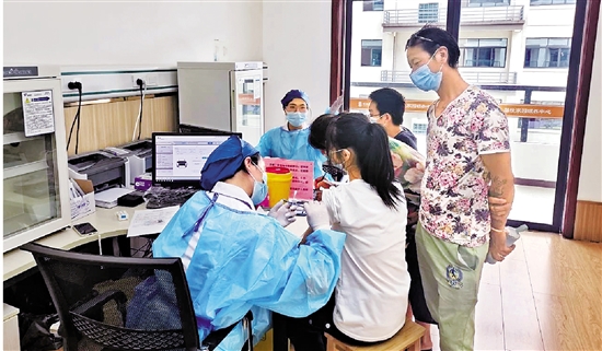 在庆元县,青少年在监护人的陪同下接种新冠病毒疫苗。 庆元县卫健局供图