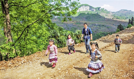 杨明护送学生放学回家。