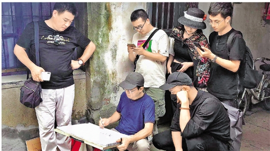 日前,中国美术学院副教授夏克梁率“边走边画”团队的十多位专业美术工作者,来到宁波江北慈城古城写生,所创作的百余幅作品将结集出版。 拍友 陈吴 摄