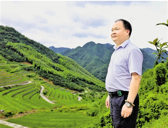 在子胥村后山,邓德庚租赁了100多亩梯田种水稻。 本报记者 姚颖康 摄