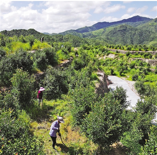 上杉坑村的油茶种在高高的山巅,绿水青山在当地变成了金山银山。