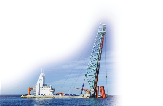 苍南近海,施工中的华能苍南4号海上风电项目。