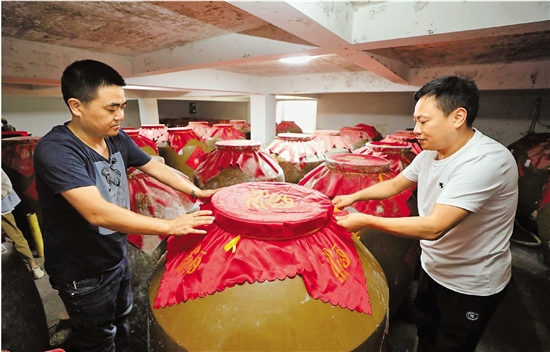 在丰家源村的酒厂内,工作人员对生产的第一轮烧酒进行封存。