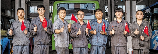 国庆假期,杭州余杭公交仓前停保基地的汽修工人坚守岗位,保障节日期间道路安全畅通。 本报记者 董旭明 拍友 王黎娜 摄