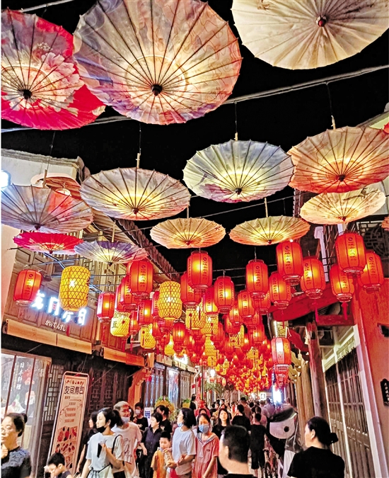 ▷国庆假期,市民和游客在瑞安忠义街观光。