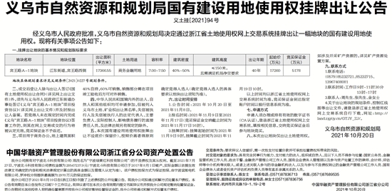 中国华融资产管理股份有限公司浙江省分公司资产处置公告