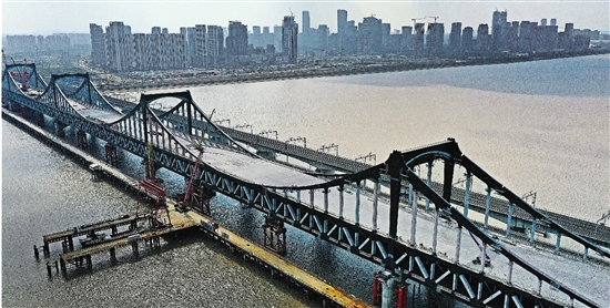 10月19日,空中鸟瞰建设中的杭州彭埠大桥。近日,彭埠大桥顺利完成拼装,进入落梁收尾阶段。该大桥是国内首座多跨长联公轨两用悬链形上加劲钢桁梁桥,是2022年杭州亚运会交通工程的标志性项目。建成后,大桥上层为8车道城市高架,下层为双线快轨,轨道两侧设有过江慢行通道。 本报记者 林云龙 摄 |