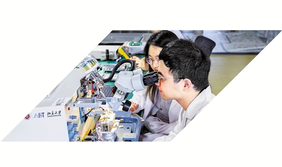 北大信研院物联网中心植入式微纳集成系统实验室成员进行芯片引线焊接。