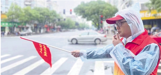 江山市“小蜜蜂”新时代文明志愿服务队开展文明交通劝导