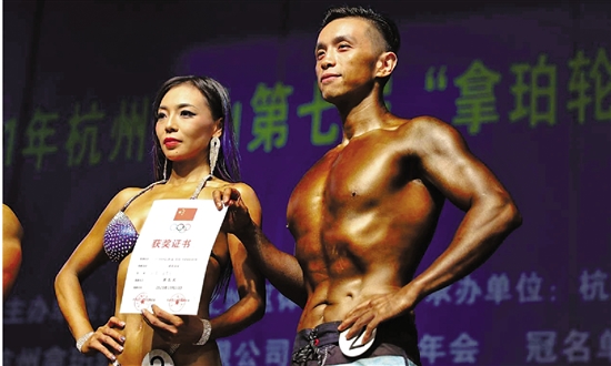 王伟和搭档获得2021年杭州健身健美大赛男女混双组第五名。