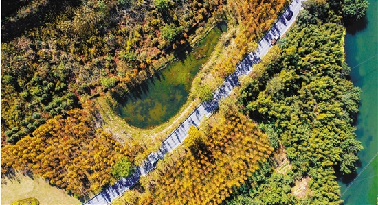 11月10日,杭州市余杭区彭余线公路两侧风景秀丽,秋意浓浓,银杏、水杉、芒草等植物形成一条彩色长廊。近年来,杭州全力推进“四好农村路”建设,建成多条自然风光优美、文旅资源特色鲜明的农村公路,为推动新时代乡村振兴、促进共同富裕提供坚实的交通运输保障。