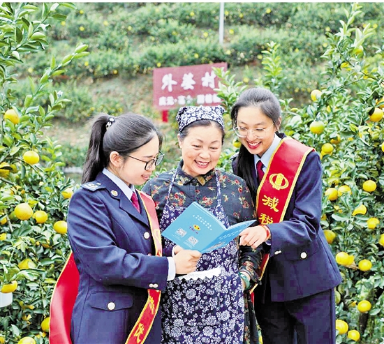 庆元县税务局干部前往甜橘柚特色农业强镇了解甜橘柚产销情况并向农户宣传相关涉农税费优惠政策。 浙江省财税局供图