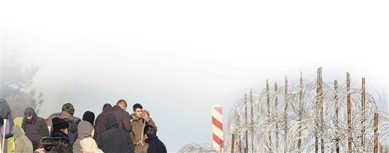 11月9日,难民聚集在靠近波兰边境的白俄罗斯格罗德诺州。 新华社发