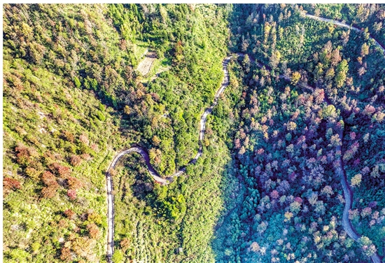台州仙居 白塔镇良潭村红叶满山,层林尽染,一派绚丽景象。 拍友 陈月明 摄