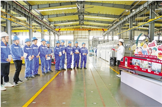 鄞州00后宣讲员走进东吴镇“宏大电梯”车间。
