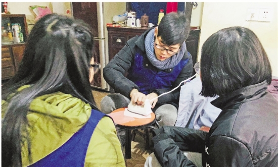 汪铮(中)和团队伙伴(左一)带小朋友做手工。