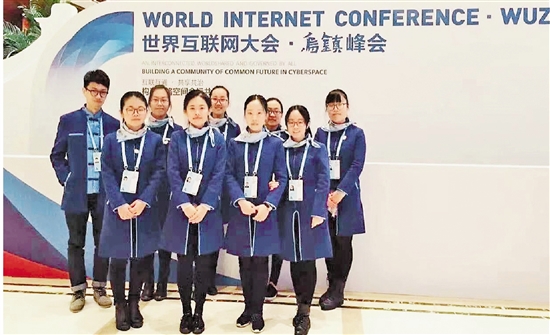 2015年,杨迪(二排左一)作为学生志愿者参加世界互联网大会。