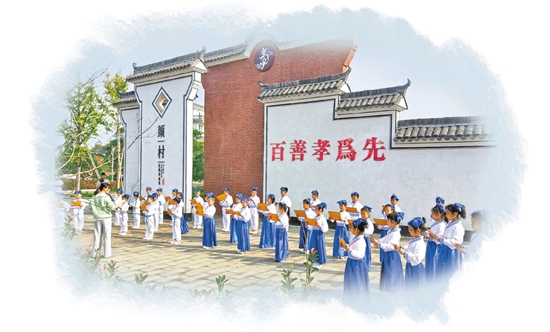 颜乌后人聚居地颜村,孩子们学习孝文化。 胡水木 摄