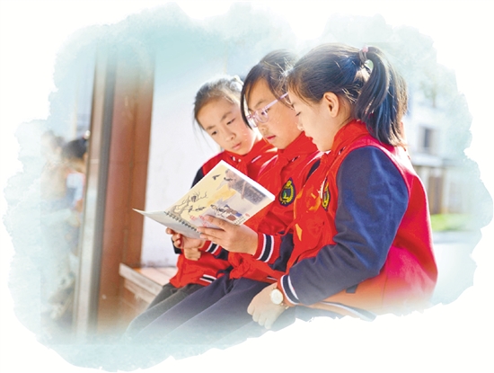苏溪二小的孩子们共读《颜乌的传说》漫画 (图片由苏溪镇政府提供)