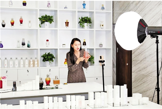 主播在吴兴美妆小镇直播带货。 拍友 何伟卫 摄