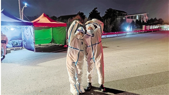 | 12月17日晚,绍兴高速交警三大队党员民警王炜在高速台州方向东关防疫卡口执勤时,偶遇正在转运密接者的妻子、上虞区司法局干警李蕊。因为任务紧急,两人合了影便匆匆分开。这些天,夫妻俩一直奋战在上虞疫情防控一线。 本报记者 金燕翔 通讯员 蒋海华 文/摄 |