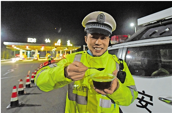 在仙居县下各镇高速公路防疫卡点,正在值守的工作人员喝到了爱心人士送来的红枣姜汤。 拍友 王华斌 摄