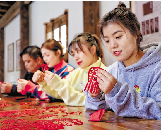 | “廉政”剪纸进村居 近日,长兴县李家巷镇中心幼儿园的老师们走进该镇石泉村,与当地党员干部一起制作“廉政”主题剪纸作品,在李家巷幼儿园剪纸特色老师的指导下,一幅幅鲜活的廉政剪纸图栩栩如生,剪纸以廉字话廉、以物喻廉等为内容,主题鲜明、形式多样、寓意深刻,在潜移默化中使廉政文化深入人心。 (陈丽敏 摄) |