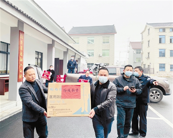 | 长兴画溪街道: 抗击疫情勇担当 温暖传递显大爱 近日,湖州市长兴县画溪街道多家两新企业给辖区村居送上防护服、医用口罩、体温仪、牛奶、方便面和矿泉水等防疫物质,勇担当,显大爱,用爱心和行动助力抗疫。图为浙江钧圣能源科技有限公司乡贤企业家俞伟江给竹元村居民区送抗疫物质。 (费黎 摄) |