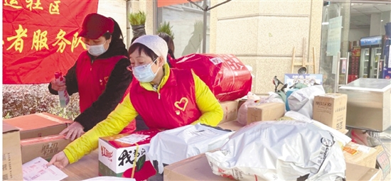 “华嫂”党员暖心团为居民消毒、分拣快递。(余杭良渚街道供图)