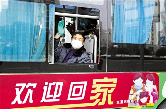 12月22日,绍兴市上虞区瑞曼尼酒店隔离点,解除集中隔离的人员向医护人员挥手告别。 共享联盟上虞站 朱胜钧 摄
