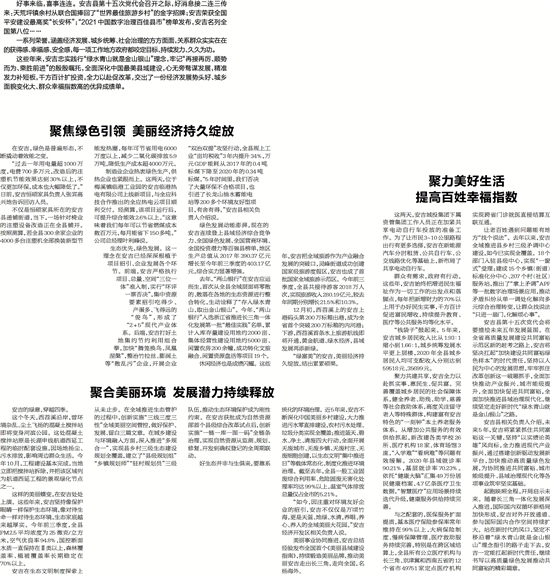 这些年来,安吉忠实践行“绿水青山就是金山银山”理念,牢记“再接再厉、顺势而为、乘胜前进”的殷殷嘱托,全面深化中国最美县域建设,心无旁骛谋发展,精准发力补短板,千方百计扩投资,全力以赴促改革,交出了一份经济发展势头好、城乡面貌变化大、群众幸福指数高的优异成绩单。